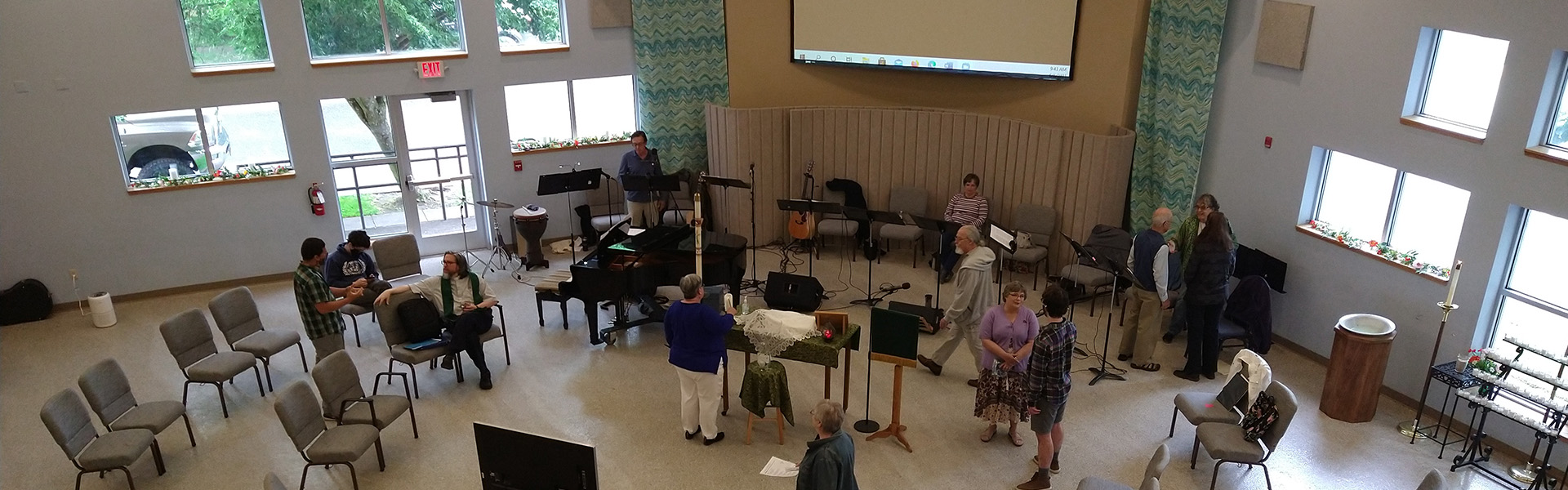 8:30 am condensed service in the Sanctuary